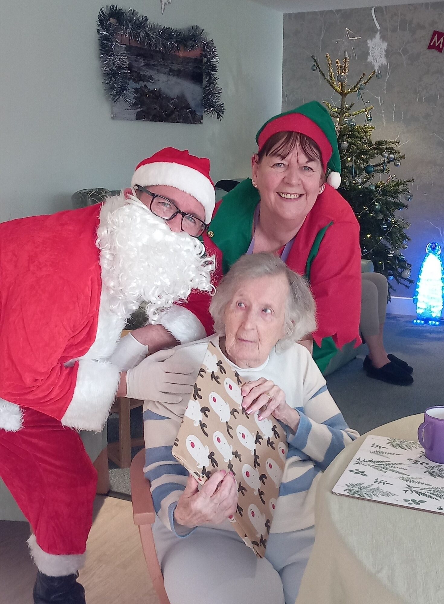 The highlight of the morning was a magical visit from Santa Claus and his team, who brought smiles to every face as they delivered beautifully wrapped presents to our residents. The excitement and happiness in the room were truly heart warming.