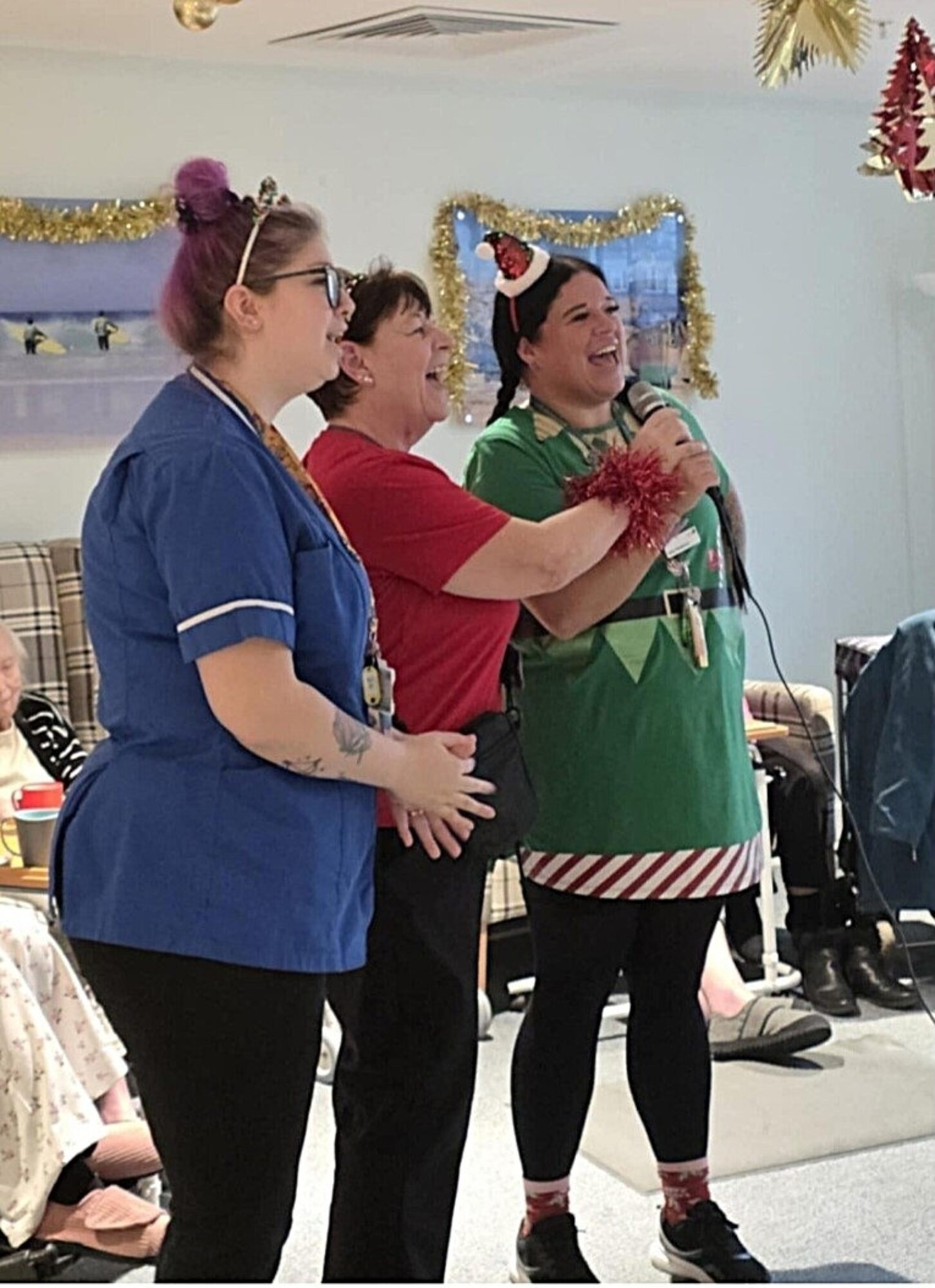 The celebrations didn’t stop there! The afternoon was filled with Christmas karaoke, where residents, families, and staff joined in singing their favourite festive tunes. The laughter and music created an atmosphere of pure joy and togetherness.