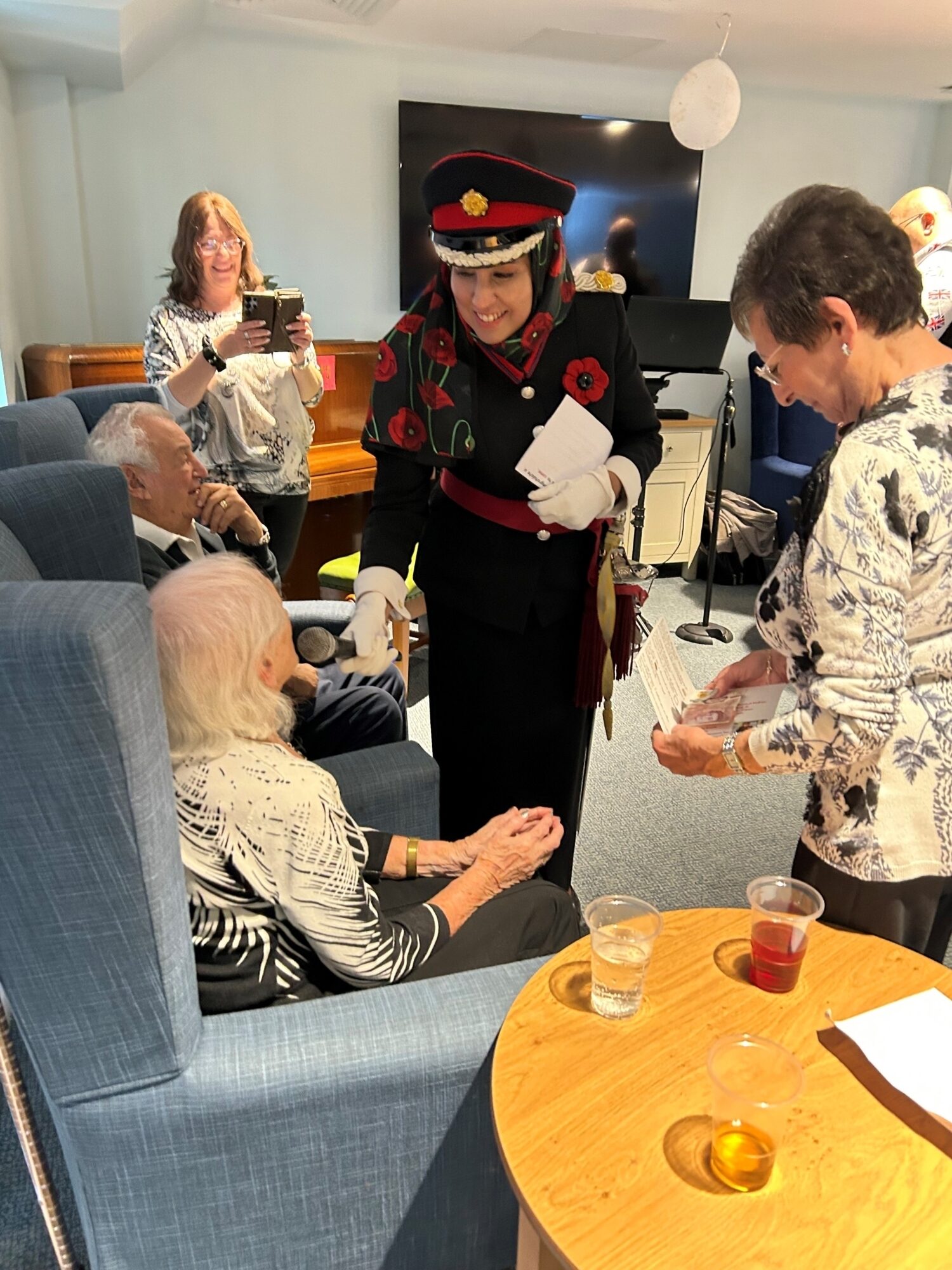 Doris’s children John and Stephanie, invited family and friends to a delightful spread of food, drinks, and a beautiful birthday cake as they shared cherished memories. The event was made even more special by the presence of Lady Sidra Naeem, Deputy Lieutenant of Essex, who visited Doris to present a heartfelt poem and a personal card on behalf of the county.